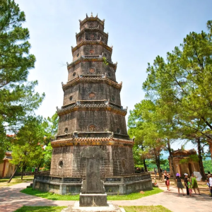 - Viếng chùa Thiên Mụ – ngôi chùa linh thiêng tại Huế nói riêng và tại Việt Nam nói chung với biểu tượng thác 7 tầng, nằm bên bờ sông Hương thơ mộng